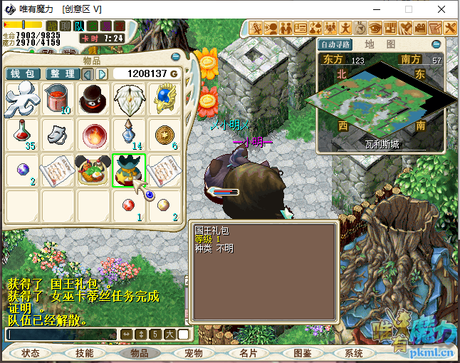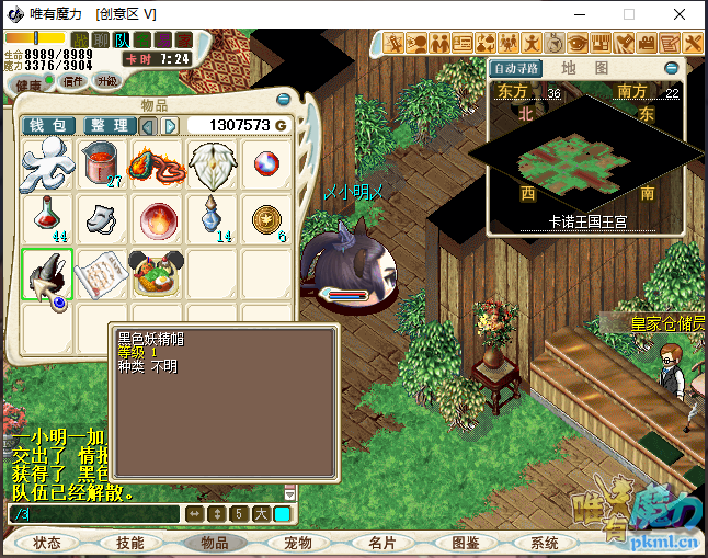 6、藏宝室内找一个红色的小箱子(37.19),获得【黑色妖精帽】传出王宫藏宝室。