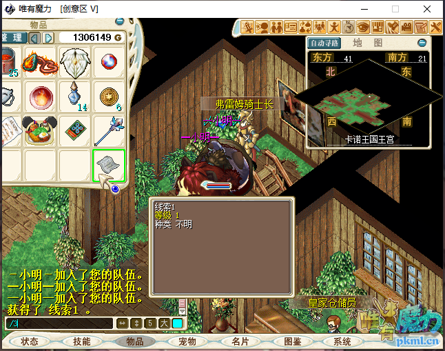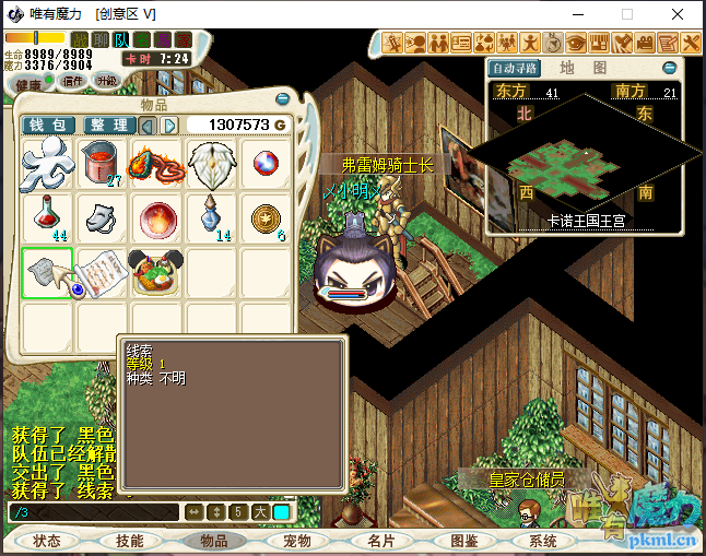 5、进入卡诺王国王宫(88.39)与弗雷姆骑士长(40.21)对话,进入王宫藏宝室。